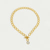 Go big without going ultra-bold: this necklace's large flat hoops feature our signature brushed-gold finish, with just one link embellished in hand-cut Rainbow Moonstones. Wear the toggle behind your beck or front and centre to switch up your style.