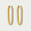 A balance of both feminine and masculine design, these pavé-embellished hoops are marked by an oval-like shape and an easy-to-fasten hinge closure.