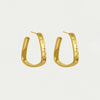 Designed with endless styling potential, these lightweight (and small-scale) hammered hoops stand out with an organic silhouette from the front, and a squared-off shape when seen at the side.