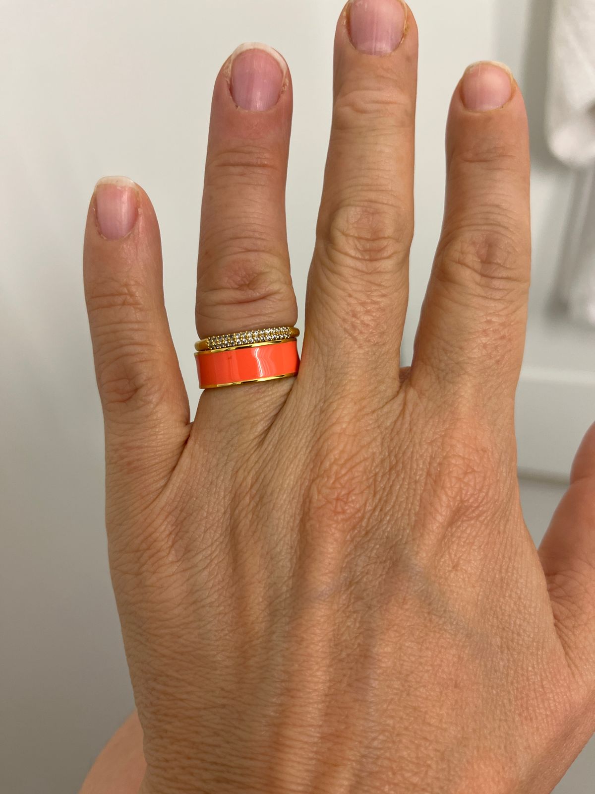 Brighten your stack with hand-painted enamel. This wide ring works on any finger and has a streamlined look that's easy to style. Mix with different colours, metals and styles—or slide it on solo. Whatever you're craving, you've got options.